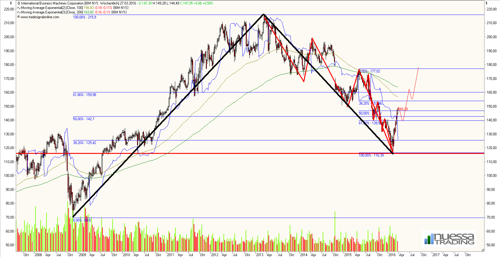 Die Entwicklung der IBM Aktie folgt nahezu der Analyse in Posting #61 vom 22.01.2016.