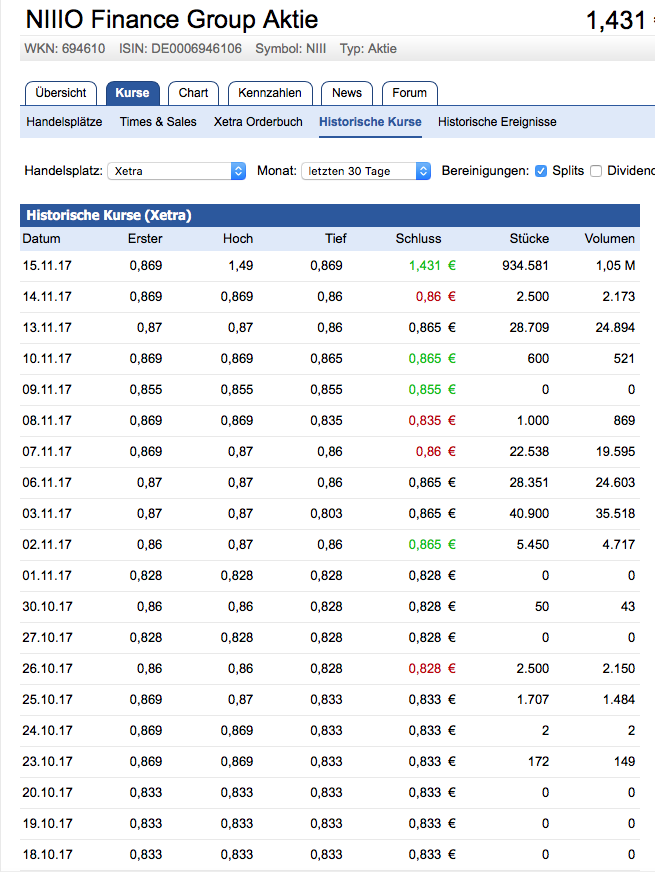 Schaut euch bitte mal die Umsätze an. Das war gestern der Wahnsinn. Heute dann über 2 €