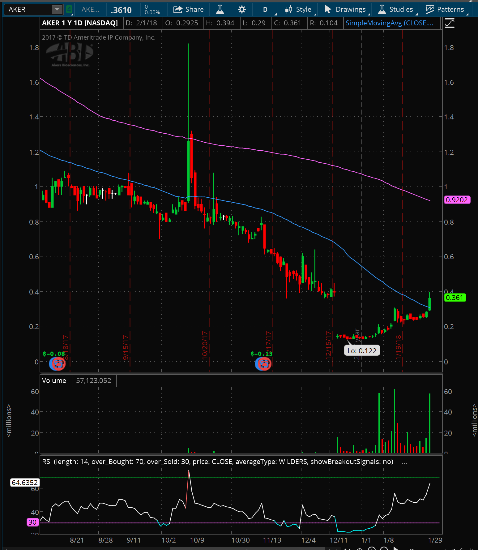 $ AKER Eines meiner liebsten bullischen Charts, verpasste meinen Einstieg bei 0..36, was der größte Widerstand war, den ichsuchte, um eine schöne Lücke zu füllen und auf .75 zu rennen