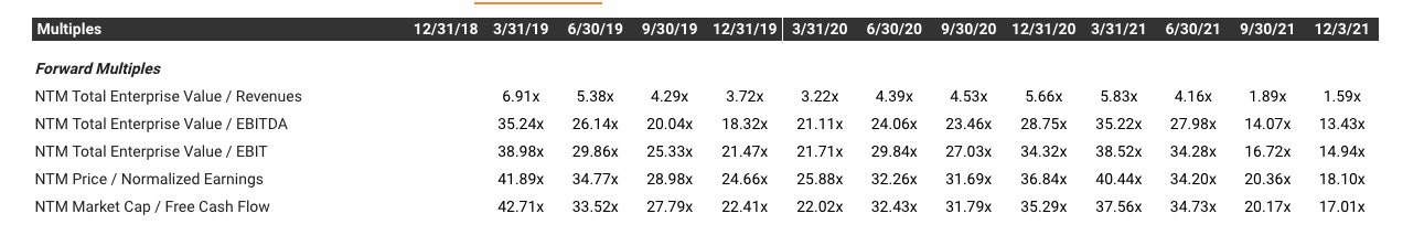 Hier überwiegen ganz einfach die Vorzüge und ich glaube, dass der Markt solche Vorzüge früher oder später würdigt (manchmal eben erst etwas später). Zum Abschluss des Tages noch eine kleine TME Statistik zu den Multiples im Hinblick auf Umsatz, EBITDA, ect.. die ein besonders motivierter Twitter-User zusammengestellt hat (gerade gefunden - nicht von mir).