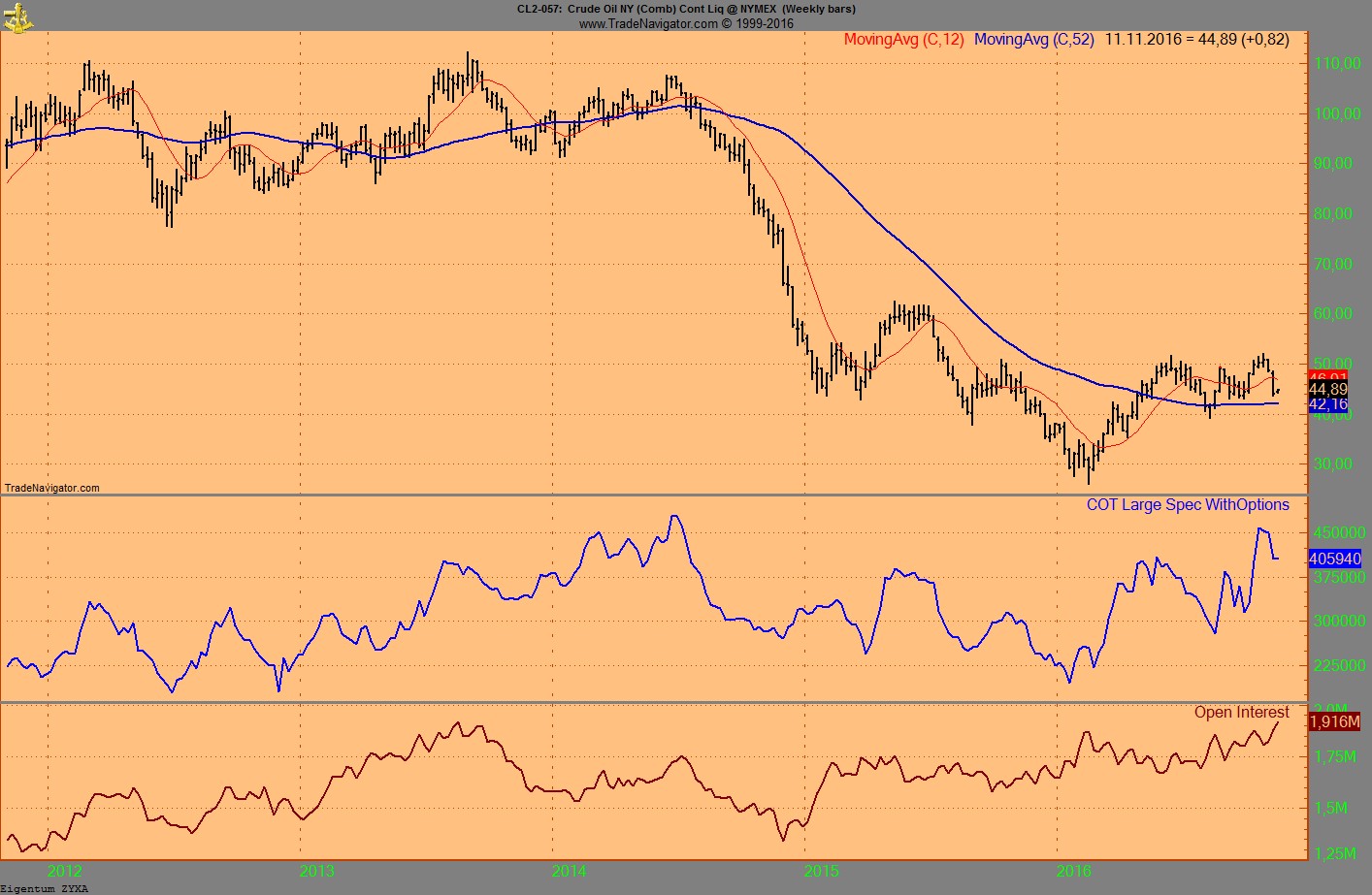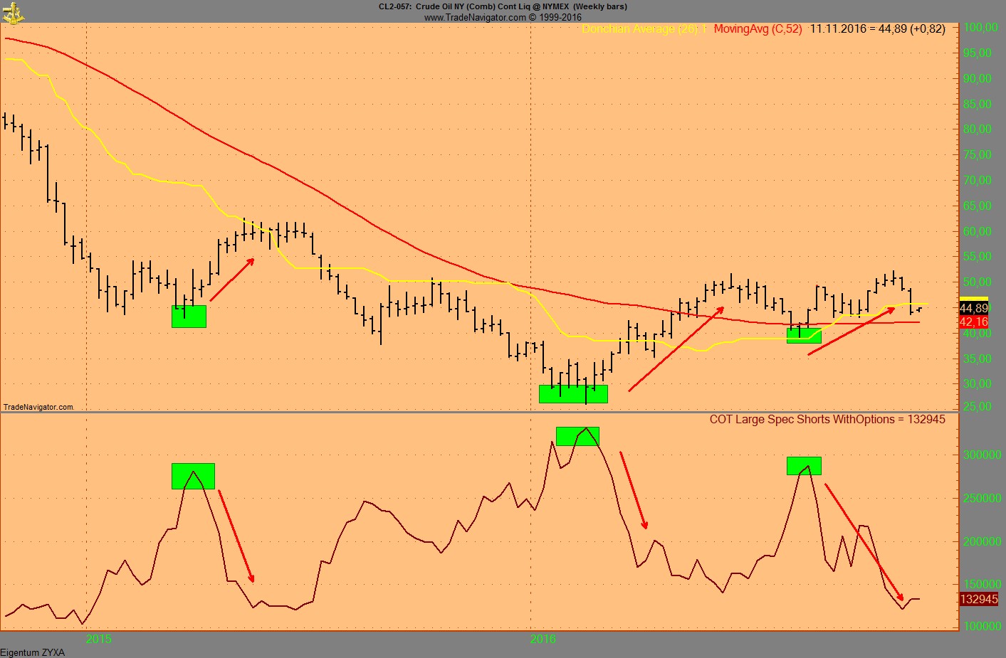 Ist gut zu sehen, aber schwer nachzuvollziehen, weil man in deiner Grafik nicht sieht, wann die Positionen glatt gestellt wurden. Bei 42,5 waren Rekordzahlen an großen Anlegern short. Kann mich noch gut dran erinnern, weil ich damals schon ein baldiges Drehen prognostizierte und sogar mir jemandem im Brent Forum drauf gewettet habe. Ich argumentierte mit meinem Wissen über den Rohstoff und die Produzenten und der andere mit Charttechnik.