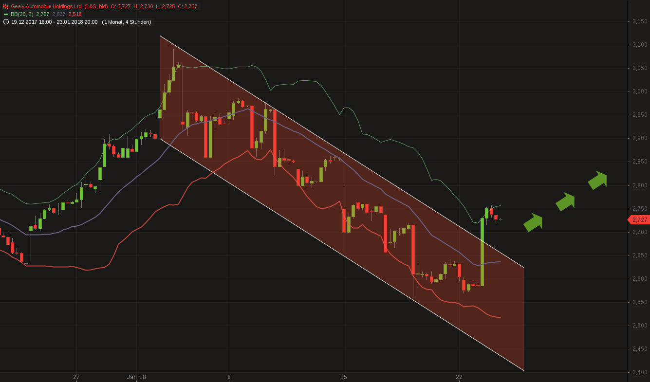 „..........wenn das Management oder die Kontrollorgane einer Aktiengesellschaft eigene Aktien zukaufen, ist das meist ein positives Signal. So geschehen in dieser Woche bei Geely Automobile Holdings, wo der Gründer und Chairman Li Shufu Aktien im Gesamtwert von 471 Mio. HKD hinzugekauft hat. Seit dem letzten Quartal 2017 befindet sich die Aktie von Geely Automobile in einer Seitwärtsbewegung. Diese könnte durch die Zündung der Kursrakete bald Geschichte sein. Der nächste Widerstand findet sich bei 30 HKD und könnte nun auch das nächste Kursziel widerspiegeln. Sollte die Geely-Aktie den Widerstand erreichen, würden sich Anleger über einen weiteren Kursgewinn von rund 14 % freuen.„