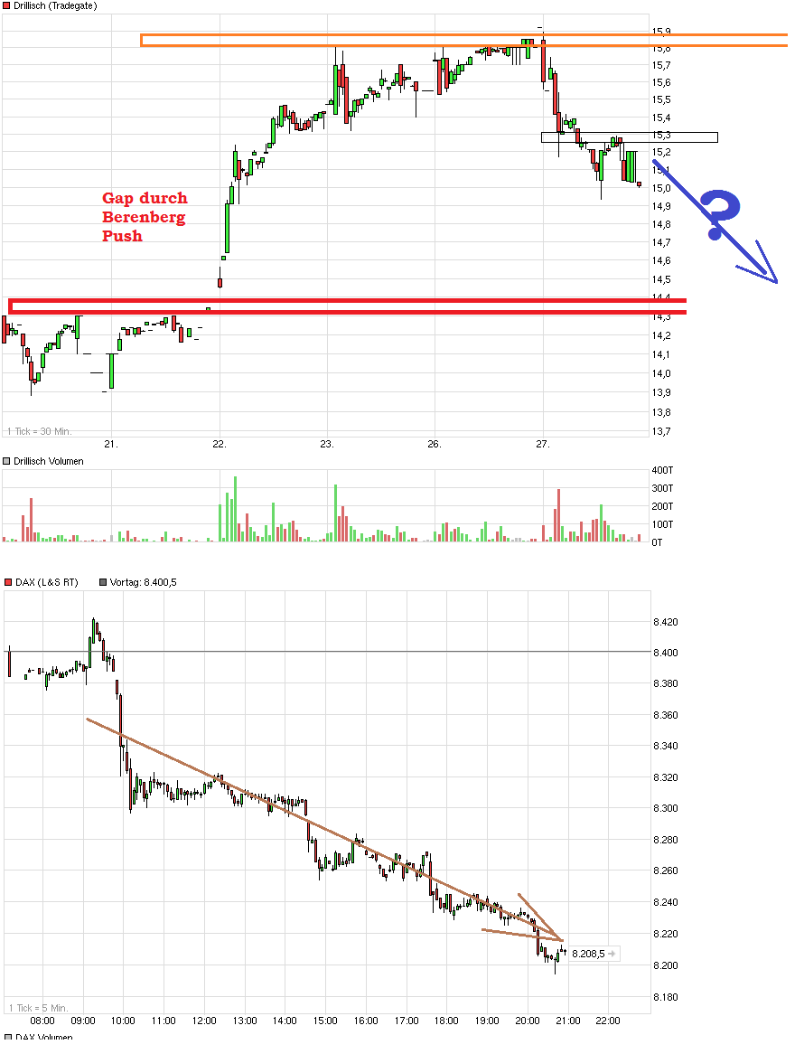 Noch so ein Schlachttag wie heute an unseren Börsen und das Berenberg Gap wäre schon wieder Geschichte. Glaubt jemand hier das Gap bleibt offen, wenn der Dax weiter Richtung des noch offenen DAX-Gaps bei ca. 8080 fallen würde? Zumindest wäre dann meine DRI Posi wieder um 20% höher ;) Habe mal ein Abstauber-Limit knapp oberhalb der Gap-Unterkante gelegt.