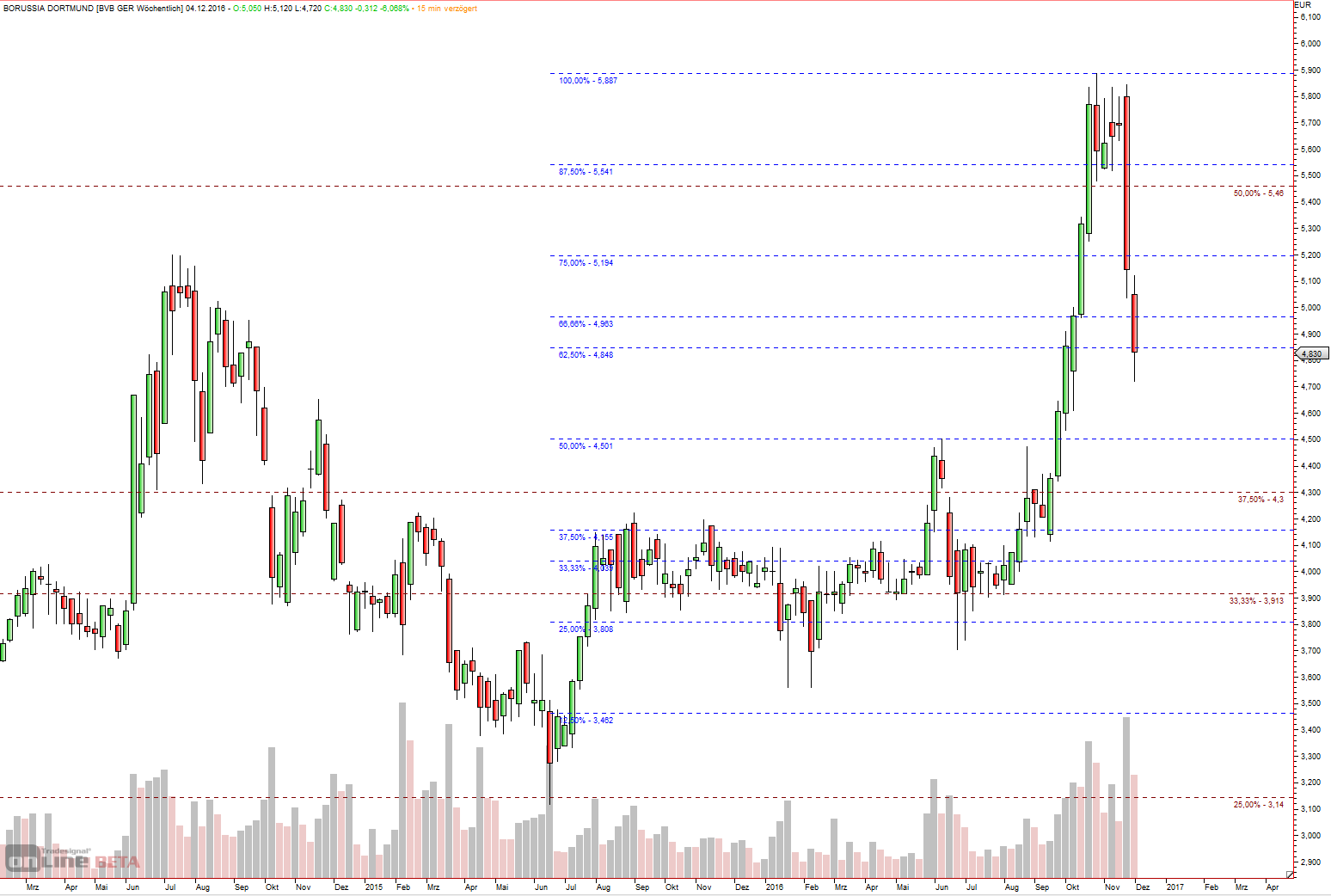 Bleib noch mal am Rand, aber spring rein, wenn es eine Gegenbewegung geben sollte.