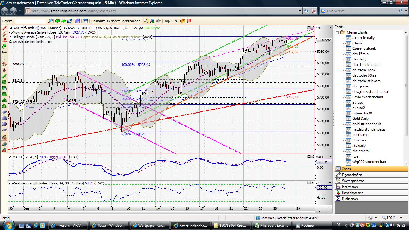 weiterhin drin. Hab mal VK bei 6015 angesetzt. Zu meinem Leidwesen muss ich morgen noch verreisen und bin erst wieder am 2.1. zurueck. Wuensche euch viel Glueck an der Boerse, seid nicht ungeduldig....der DAX wird fallen ! Alles zu seiner Zeit...noch wird er hochgehalten von den Amis....wieder mal die letzten Minuten!