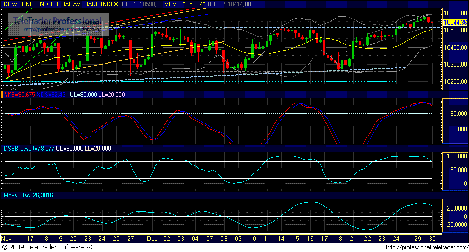 aber man kann es nicht leugnen, die spitze sollte vorerst erreicht sein und es sollte nun im neuen jahr zu einer konsolidierung endlich kommen. Nur im daily fehlt mir noch nen short signal im dow, aber das sollten wir auch noch hinbekommen ;-)