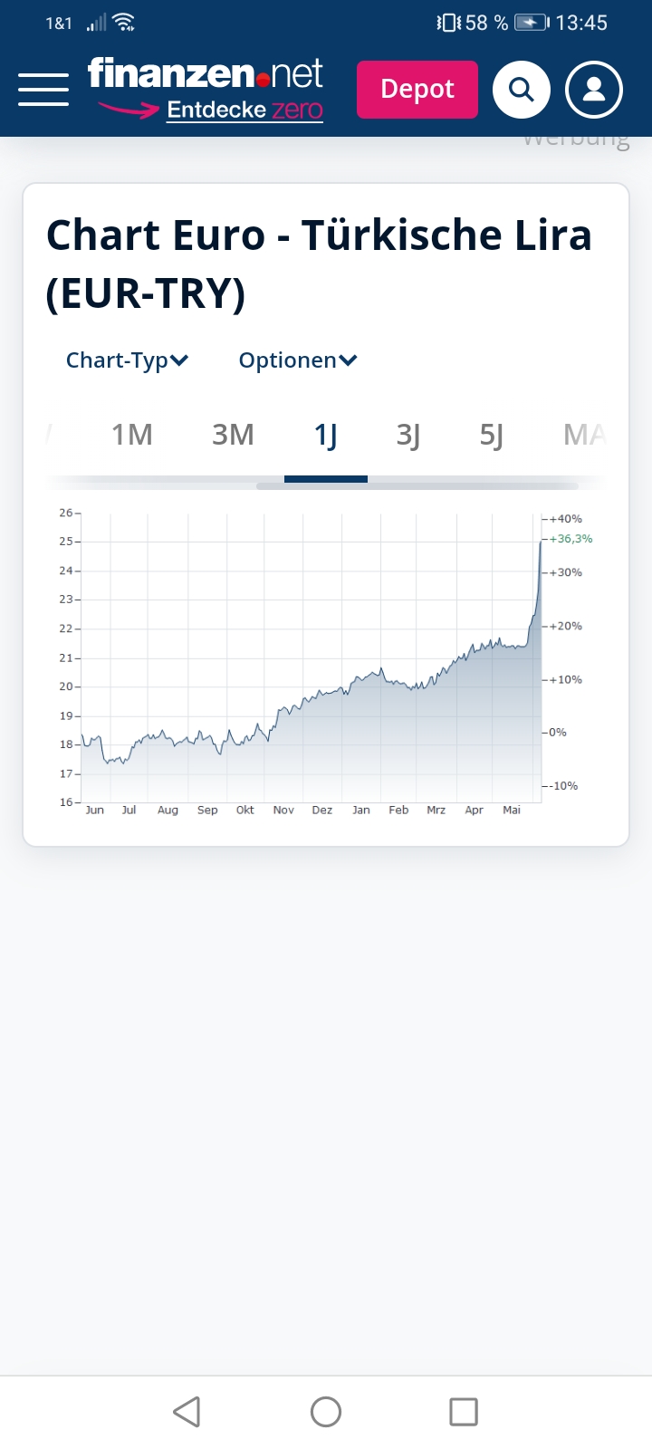 steigende T-Lira setzen 1 € = 10 TL in ein bis 2 Jahren??