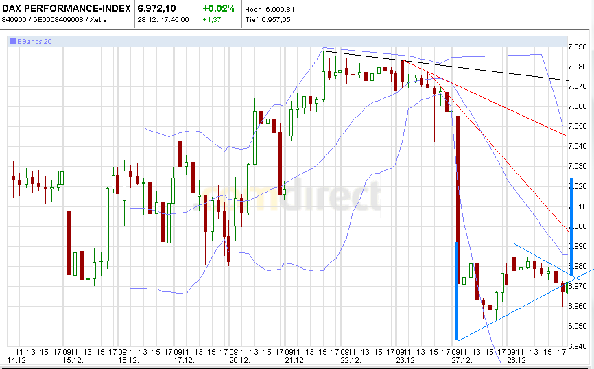 Nichtmal die Termine heute haben richtig Farbe ins Spiel gebracht, 6980 und der Markt stagniert um den Wiederstand herum.