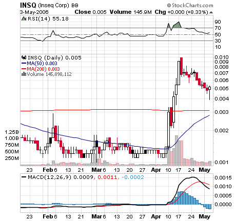 INSEQ also announced its intention to file a registration statement on Form S8 today for 600,000,000 common shares for issuance under INSEQ's 2006 Stock and Stock Option Plan.