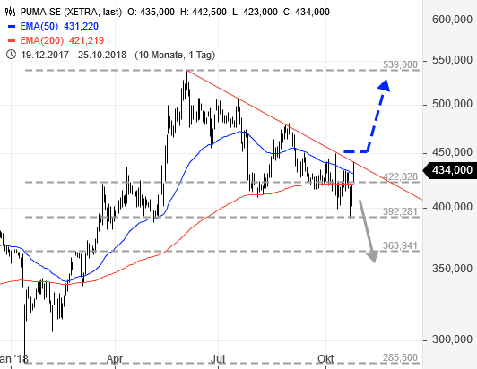 25.10.2018 JPMorgan belässt Puma SE auf 'Overweight' - Ziel 550 Euro
