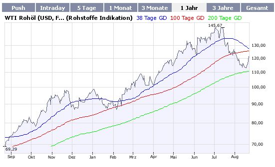 Aktuell: Öl bei 104 Dollar, die 100 ziehen magisch an. Daumen drück. :))