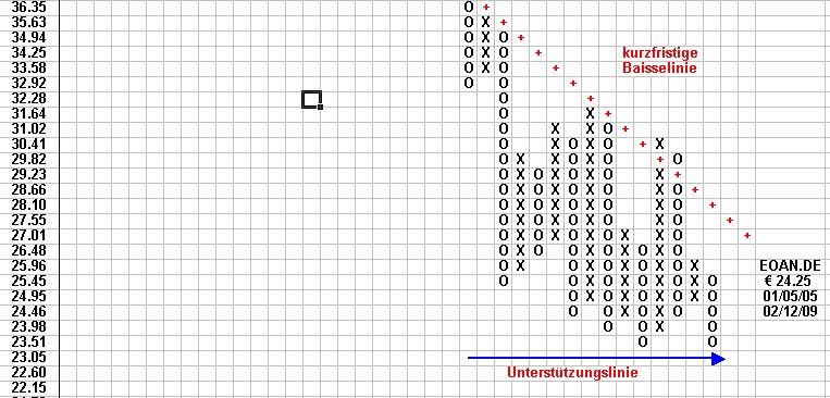 Fazit: Ein Blick auf den Chart zeigt eine klare betonharte und mehrfache gehaltene Unterstützungslinie bei 24 €. Hier am Tief zu shorten wäre der glatte Wahnsinn und die Analysten empfehlen EON zu kaufen. Erst bei einem nachhaltigen Durchbruch der 24 € wäre ein Short denkbar.