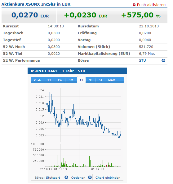 Besser die XSUNX wird nicht gepusht, denn wenn sie von den Pushern entdeckt wird, dann geht sie sehr hoch und ganz schnell wieder tief.