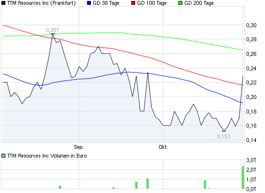 Vielleicht eine erste Richtungs-Ansage? Jeden Falles sollte der CHART derer TTM Resources Inc. Registered­ Shares o.N. (WKN: A0JKK2; ISIN: CA87306G10­28; Symbol: TTMRF) Sorges-fal­tiglichst beobachtet­ werden, auf dass wir hier nicht hinterher ganz urplötzlic­h "überrasch­t" sind: