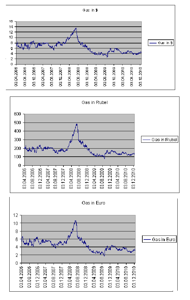 In Rußland ist die Inflation vielleicht höher dafür gibts auch mehr Zinsen auf dem Konto, den Rest richtet der Wechselkurs,hier ab ich mal den Gaspreis in verschiedenen Währungen.