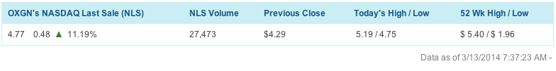 Von den Zahlen wird man sich eh noch nichts versprechen können. Bisher gab es ja eigentlich nur Kosten für den Forschungs- und Studienaufwand. Kann eher sein, dass es dann wieder runter geht, wenn die Ernüchterung kommt, dass es noch etliche Jahre dauern wird, bis Geld verdient wird. Immerhin ist der Cash Bestand recht gut und soweit ich gelesen habe, ist OXGN bis Mitte 2015 bereits durchfinanziert. Es gab darüber hinaus noch warrants, die sicherlich gestern gezogen wurden und damit noch mehr Cash in die Kasse spülen sollten. Spannend wird auch, wie Roche in Zukunft vorgeht. Vielleicht verleiben die sich Zybrestat gleich ein, um es mit ihrem Avastin zur Krebsbehandlung einzusetzen und die vollen Erträge einzufahren.
