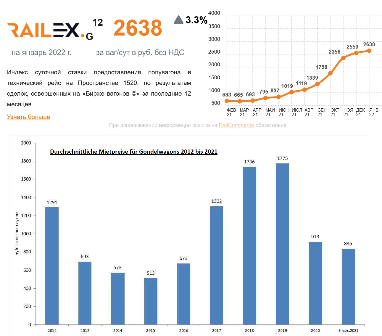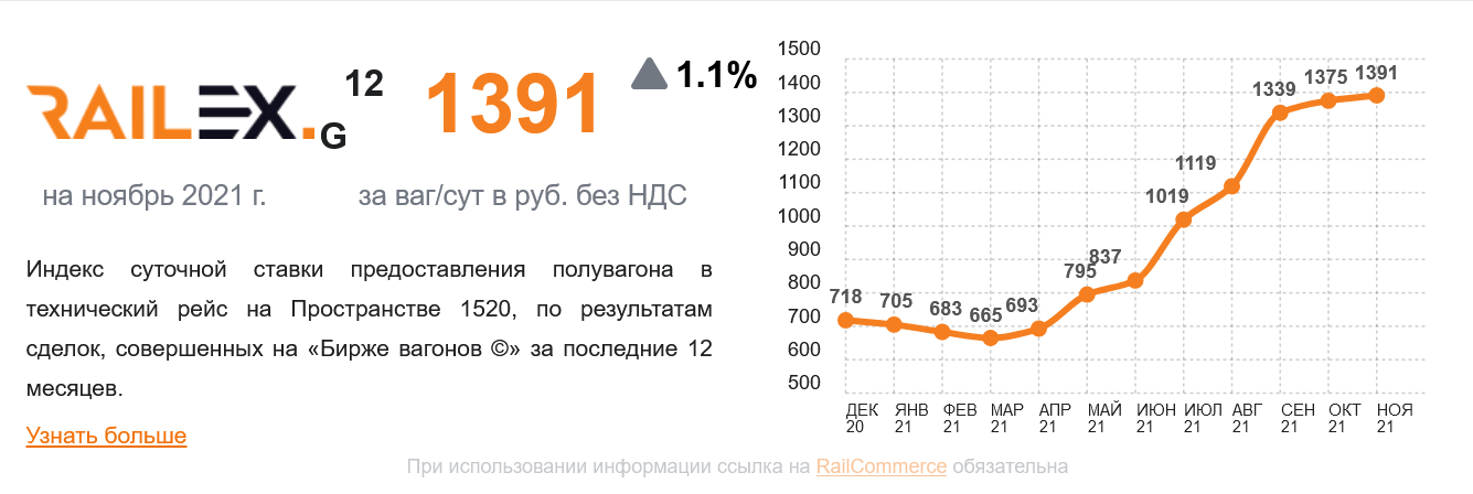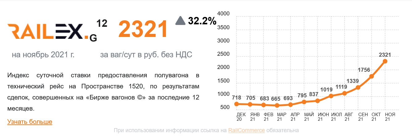 „Im Gondelwagen-Segment nähern sich die Mietpreise der Marke von RUB 1.500 pro Tag. pro Beförderung im Rahmen zuvor abgeschlossener Verträge und der Mietpreis auf dem Spotmarkt beträgt 2.500–3.000 Rubel pro Tag. Die Spotpreise übersteigen bereits das Niveau von 2018–2019, als es an Waggons mangelte, der Transport wuchs und die Kohlepreise (nach diesen Standards) hoch waren “, sagen Experten.