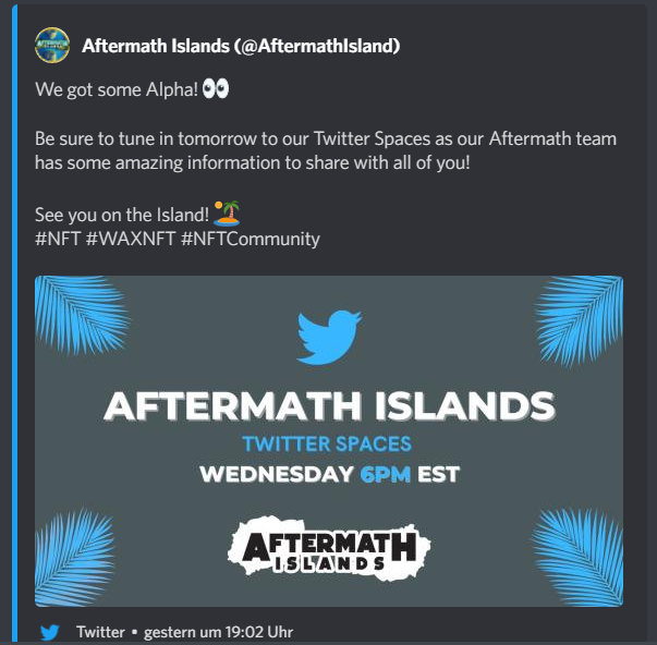 Ankündigung des bevorstehenden LQID News Release und 15% Rabattcode für Aftermath Islands Metaverse Parzellen (Virtuelles Land) und 3D-Häuser: https://twitter.com/ecke_rein/status/...3d0HLw3glxKDAdckw8Dg&s=19