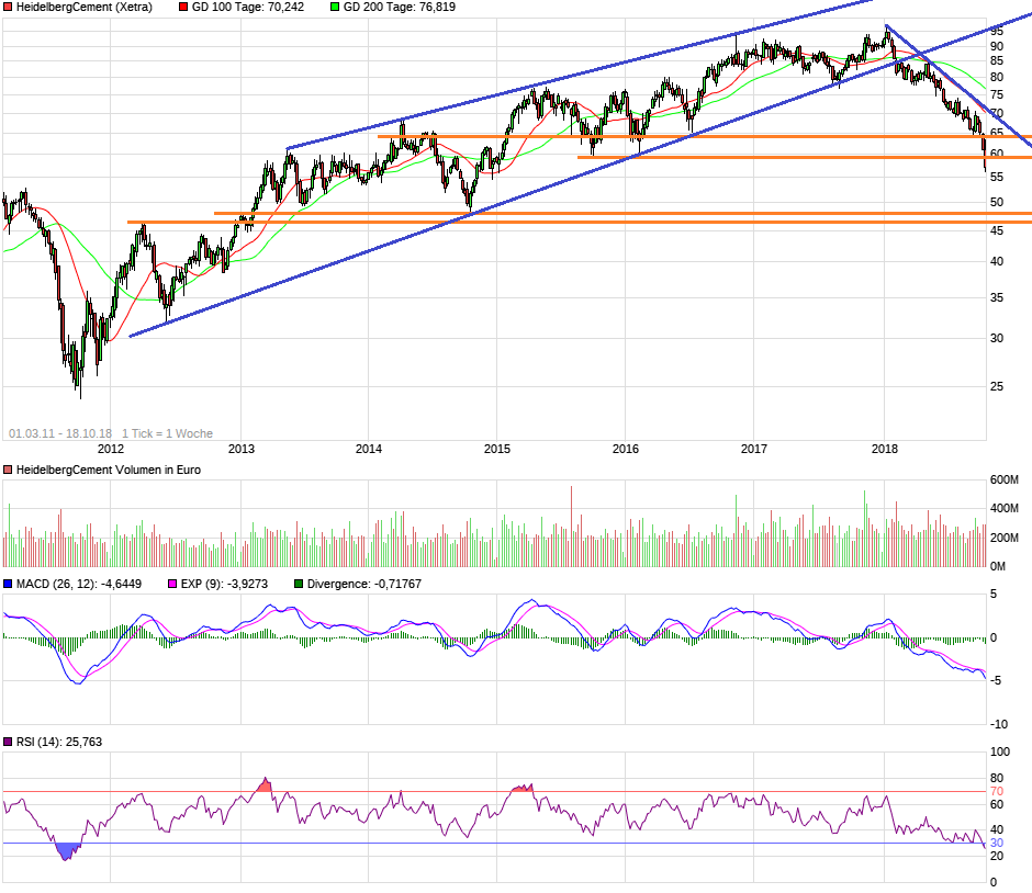 Dazu sehe ich auf Lange sicht das die Welt sich immer mehr Beton Bunker hinstellt ( auch Häuser genannt ) Wenn man mal nach Afrik schaut , da benötigt man noch einiges an Häuser , ebenso in vielen anderen Entwicklungsländer , Ein großer Markt der noch erschlossen wird und der Weltmarktführer in sachen Beton wird da sicher auch ein Stück vom Kuchen abbekommen . Daher für mich völlig abartig das die Aktie so stark gefallen ist obwohl man schon VORHER so deutlich gefallen war . Die Kurse jezt absolute Kaufkurse ! Ob man nun auf einen kleinen Rebound hofft in Richtung 60 oder wirklich länger dabei bleiben möchte um in ein paar Jahren auch wieder Kurse um die 90 zu sehen ist eigentlich egal aber die Kurse jetzt nach den VÖLLIG übertreibenen 10 % sind ABSOLUTe Kaufkurse und viele würden sich den Einstigskurs noch wünschen.