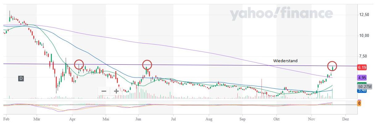 Nach dem Langfristchart zu urteilen, sollte es erst mal bis 10 EUR steigen. Dann wird es wohl eine Konsolidierung geben, bevor, vorausgesetzt die Unternehmenszahlen stimmen, ein Überschreiten erfolgt.