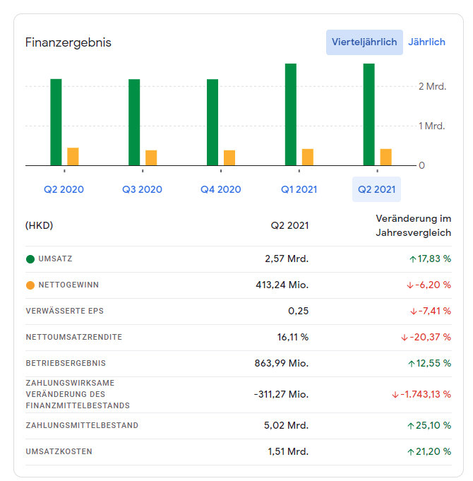 2018 3.4 Mrd HKD Cash+Wertpapiere heute heute 6.6 Mrd Hkd Cash+Wertpapiere