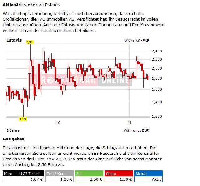 an der ESTAVIS AG, Berlin, Deutschland am 12.04.2011 die Schwelle von 3%