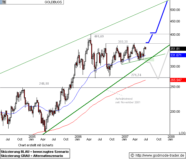 Amex Gold Bugs Index - Kaufsignal bei Anstieg über...Datum 17.07.2007 - Uhrzeit 18:08 (© GodmodeTrader - http://www.godmode-trader.de/)