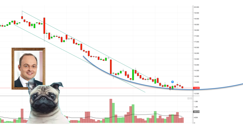 Zumal es aktuell eher danach aussieht, als warte die Masse auf 11,xx Kurse zum nachkaufen oder einsteigen. In dem Bereich könnte sich dann aufgrund der Neu-Einsteiger/Nachkäfuer meiner Meinung nach ein solider Boden bilden ( bei fast -50% zum Jahreshoch, Wahnsinn.). Ich habe jedenfalls nichts dagegen, für 11,xx nachzukaufen, hätte aber genausowenig ein Problem damit, wenn es langsam nach oben geht. Aber was weiß ich schon, die Zukunft wird es zeigen.