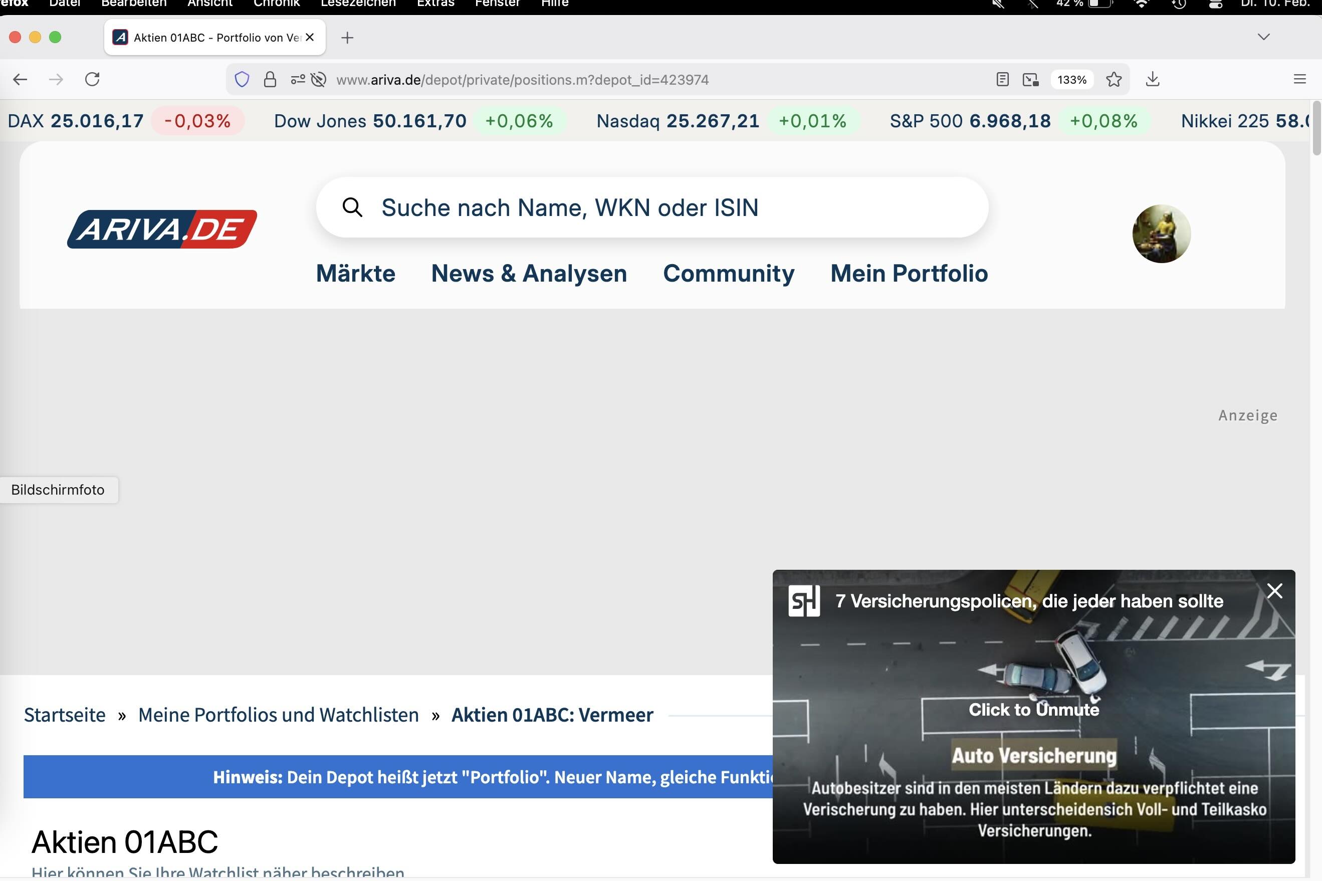 Viertens Ist ein Popup "Mein Portfolio" am rechten Rand angebracht, und die Liste von eigenen Beobachtungslisten erscheint dann am LINKEN BILDSCHIRMRAND -- ich muss den Cursor über die gesamte Breite des Bildschirms fahren, und darf auch hier die popups bloß nicht fallen lassen.