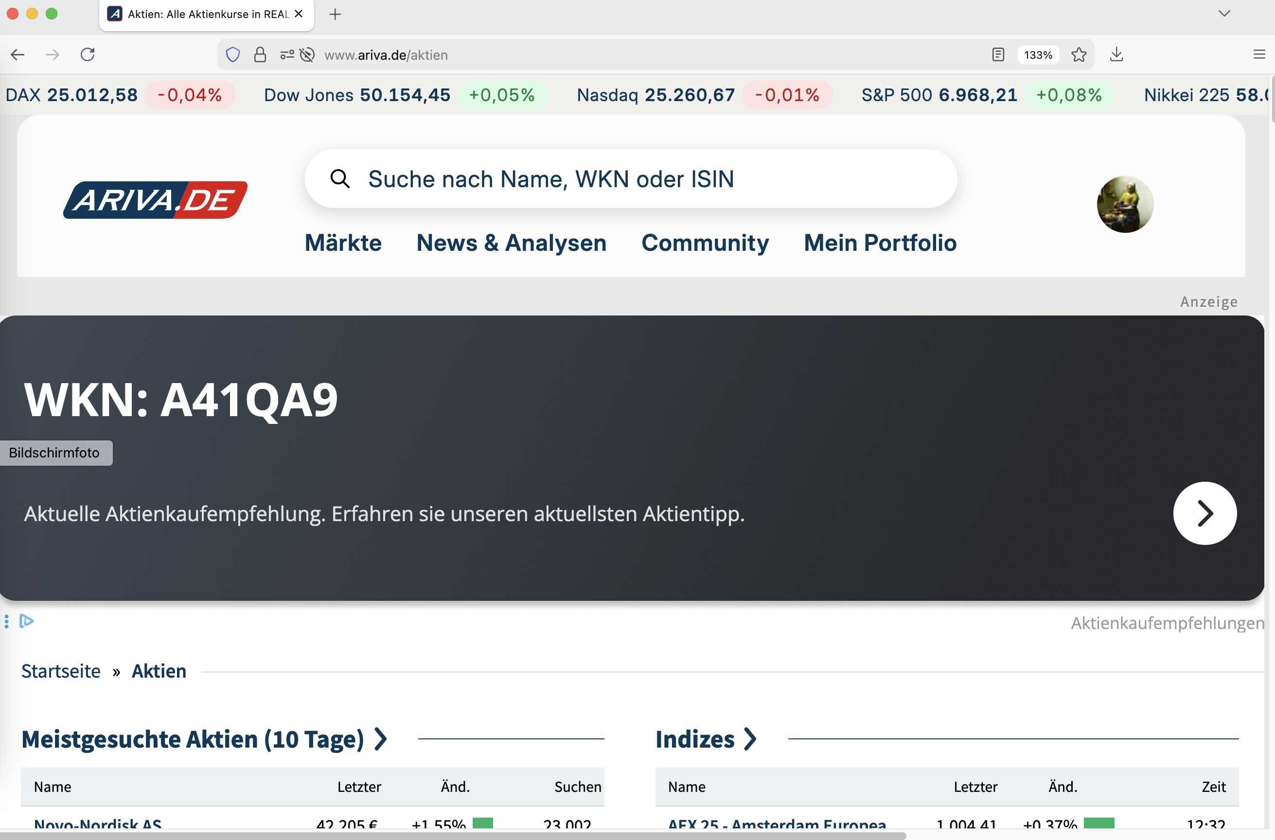 Bzgl. Hindernisparcours zur DAX-Kursliste: Klick doch sonst einfach in das Suche-Feld. Rechts unten findest du dann auch die DAX-Kursliste als Quicklink.