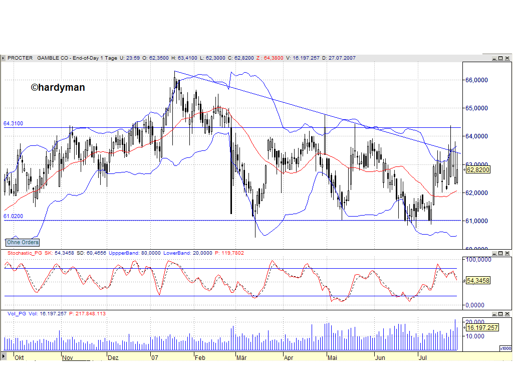 sind seit Monaten in einer Tradingrange zwischen 61$ und 65$