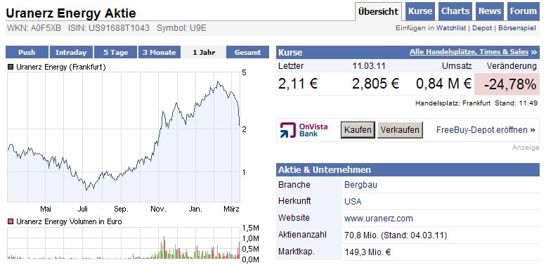 alle welt denkt nuun über möglichkeiten zum schnellen ausstieg bei akw 's nach !!!!!..........somit fällt natürlich das dort benötigte uran noch rasanter als die schon ohnehin geprügelten werte !!!............ist doch ganz simpel !!
