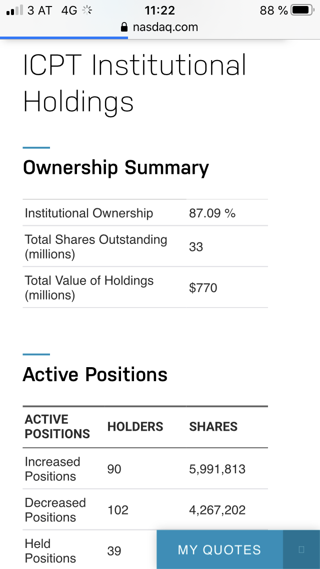 • 1. Reddit > Wallstreet­bets > ICPT hat eine hohe Short Quote, HedgeFonds­ könnten kalte Füße bekommen haben