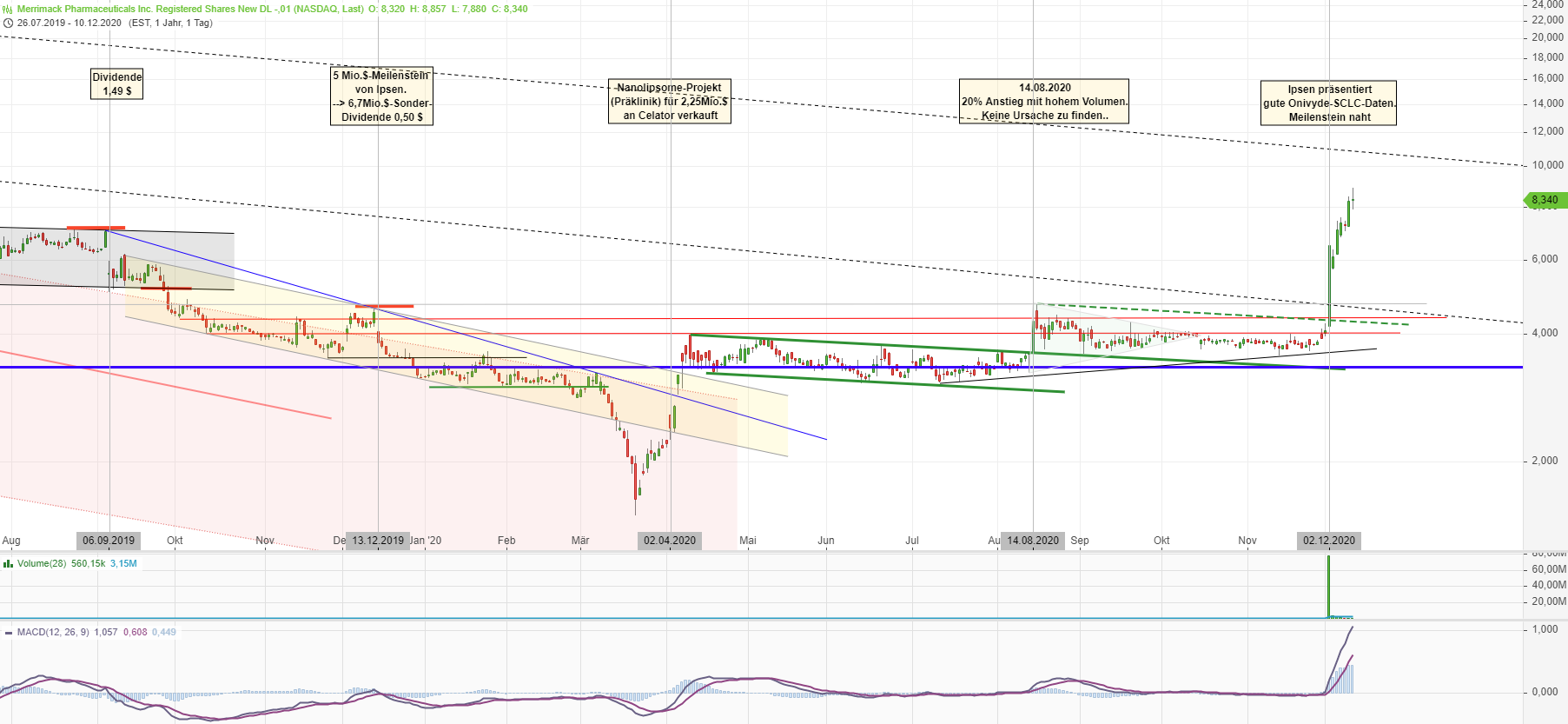 Heiße Wette auf Onivyde? Angeblich könnten im nächsten Quartal vorläufige Ergebnisse bekannt gegeben werden. Topline Ergebnisse werden in 2022 erwartet. Alles steht und fällt mit den Studienergebnissen bzw. der Zulassungsentscheidung. Zuletzt gab ein einige Insider-Käufe, allerdings noch zu Kursen von 3,..$