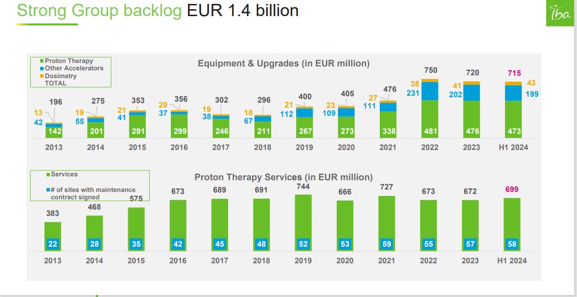 Situation bzw. den Case bei IBA wie folgt: IBA hat in der Vergangenheit seit 2017 mit den Protonenräumen Geld verloren. In der Coronazeit konnten keine installiert werden, dann kam die Inflation was bei hohen Backlog übel ist. Ab nächsten Jahr sind aber genug Systeme installiert, damit man damit nachhaltig Geld verdienen kann, über Upgrades und Service. Dies sind wiederkehrende Umsätze. Proton wird immer eine Nische bleiben, mehr als 3-5 Räume wird man nicht verkaufen pro Jahr. Solange es eine Cashcow wird und im Mittel um 5% wächst ist es ein sehr gutes Business.