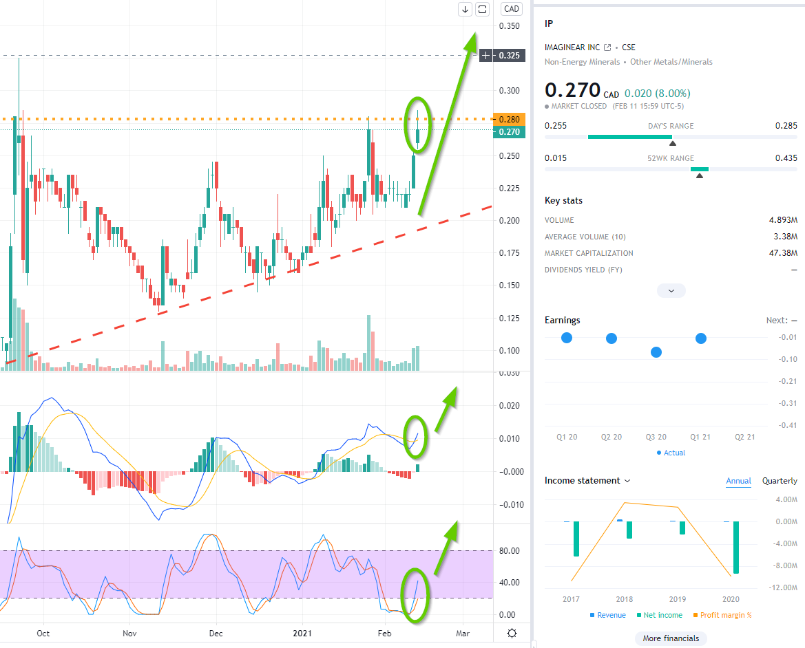 IP ist seit 2, 3 Tagen aus charttechn­ischer Sicht in einem Bullish Mode und wird nun rasch die nächste Marke bei 30 CAD Cents knacken.