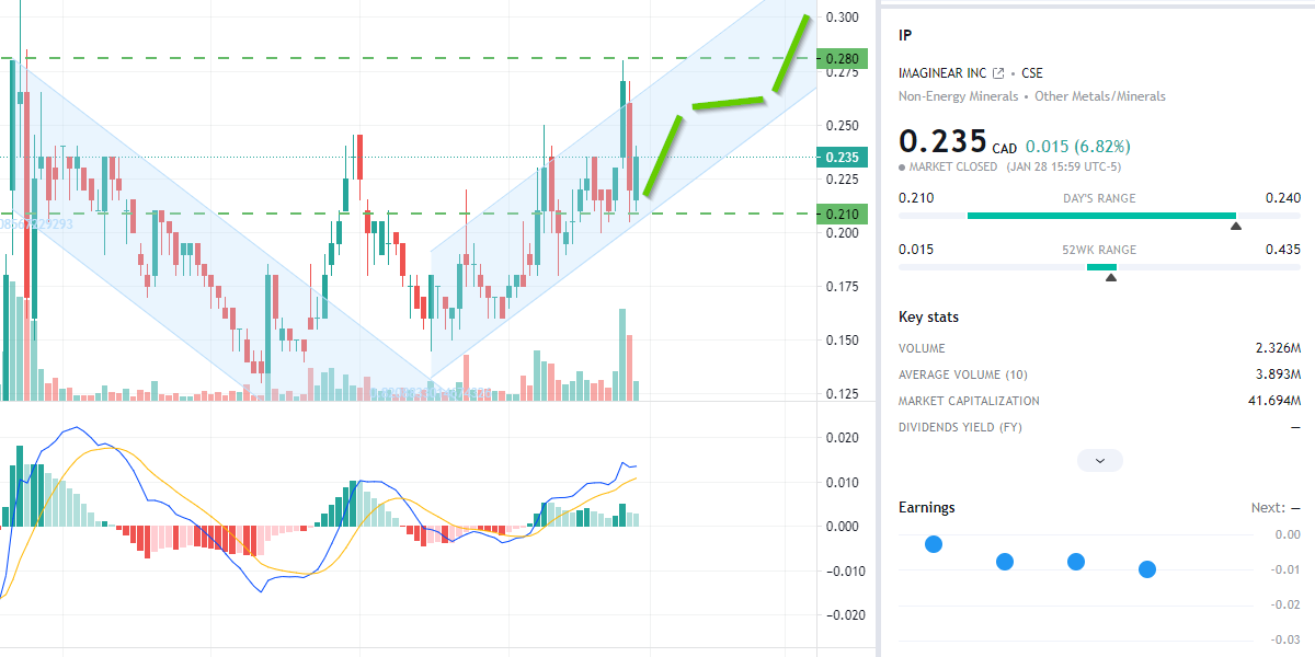 Aus charttechn­ischer Sicht ist die Lage weiterhin grün. IP hat im unteren Bereich des Trendkanal­s nun nochmals erfolgreic­h den Support getestet und baut sich gerade ein schönes Treppchen nach oben auf. Abgesehen von den Good News stellen die Insiderkäu­fe der letzten Tage durch den Chairman - teilweise zu Kursen um die 0,27 CAD auf dem reguären Markt - für mich ein weiteres positives Vorzeichen­ dar.