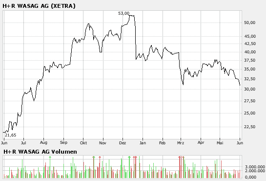 Die Aktie von H&R WASAG habe das erste Kursziel der Experten von 40 Euro Ende April schon fast erreicht, um dann wie im März wieder in den Bereich um 30 Euro zurückzufallen. Von hier aus drehe der Kurs nun aber wieder nach oben. Mit dem Rückenwind durch den positiven News-flow sollte es weiter aufwärts gehen, zumal eine attraktive Dividende auf die Aktionäre warte.
