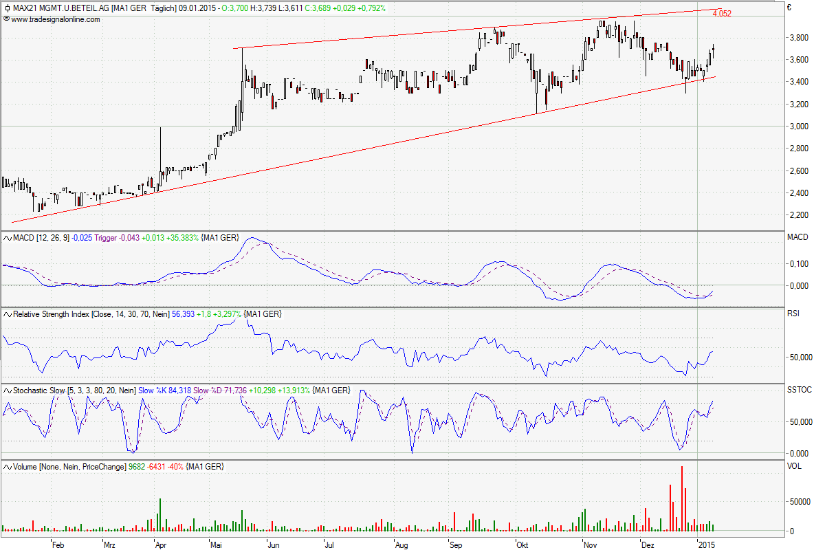 Chart verläuft wie im Lehrbuch und MACD jetzt mit Kaufsignal. Der Weg deutlich über 4€ könnte damit geebnet sein zumal die letzten Highs auch alle immer einen Ticker höher lagen als die voran gegangenen. In diesem Jahr sollen zudem gem. KC sämtliche Beteiligungen bis auf LSE schwarze Zahlen schreiben: