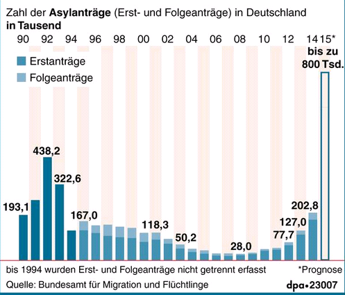 Wir kriegen genauso Flüchtling­e wie die neuen Bundesländ­er. Gem. dem Verteilung­sschlüssel­ werden wir ca. 40.000 dieses Jahr bekommen.