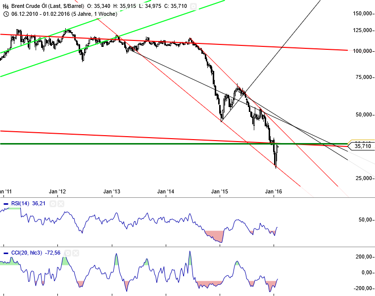 Was WTI angeht, dort handeln sie nach Charttechnik. Ich wiederhole sehr oft, dass ich kein Charttechniker bin, vermute aber 30,42 $ muss vorerst halten sonst drohen neue Tiefstände. Bei Brent muss 33,50 halten. Wenn die Marke nicht hält, dann sind auch hier neue Tiefstände möglich. Ich bleibe daher nach wie vor aus dem Spiel raus.