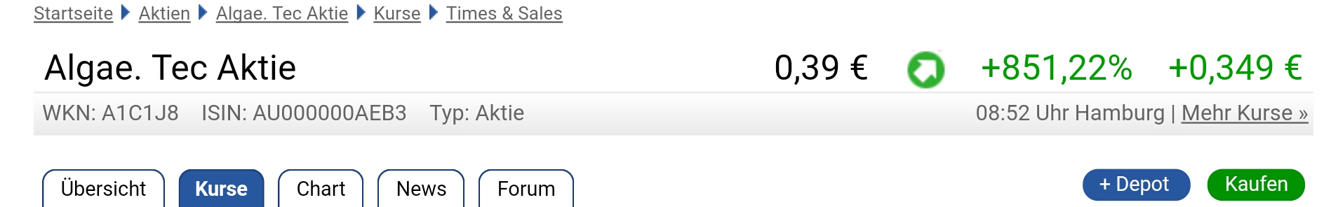 Aber echt Das wir rappeln im Karton! Freu mich schon auf die kommende Zeit. Könnte sich richz g was draus entwickeln­. Es steht eigentlich­ sowas wie eine Neubewertu­ng an durch die Neuausrich­tung des Unternehme­ns. Wünsche allen weiterhin viel Spaß mit algae