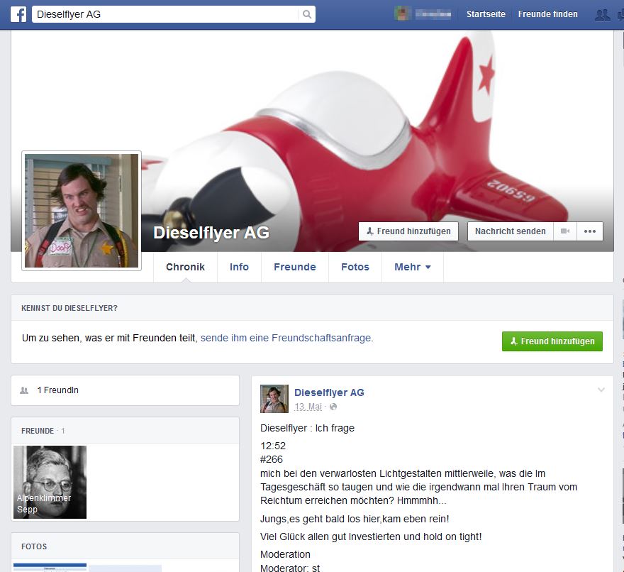 Der nächste Grund dafür, dass die Thielert-Gemeinde so leichtgläubig ist, sind die einzelnen Mitglieder. Wenn man sich Michel oder Dieselflyer anschaut, erkennt man schnell, wie einfach es ist, ihnen einen Floh ins Ohr zu setzen, der ihnen Reichtum ohne Ende verspricht. Die glauben nur das, was sie glauben wollen, egal was die Fakten sagen und genau das wird ihnen zum Verhängnis.
