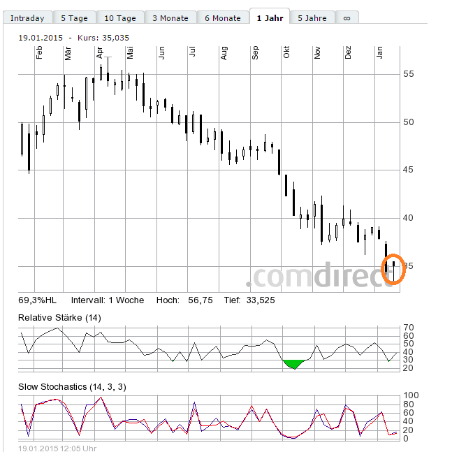 Meine Strategie ist es immer billig(Panikwert) in eine Aktie einzusteigen und sie teuer(Gierwert) wieder zu verkaufen. Das Unternehmen muß hoch kapitalisiert sein und auch für die Zukunft interessante Produkte anbieten können. Wäre ich vom Turnaround nicht überzeugt, spekuliere ich keinen Ct. auch nur für 5 Minuten. Lanxess möchte ich nicht als "ehemals erfolgreiches Unternehmen" titulieren, dafür generiert es immer noch akzeptable Gewinne und Dividende. Ich schaue mir die Kursentwicklung der letzten 10 Jahre an und untersuche anschließend die stark gefallenen Aktien nach den Gründen für den Verfall. Wichtig ist für mich dann, ob sich die Unternehmensführung dem Problem angenommen hat. Ab hier investiere ich dann in das Unternehmen übere OS als daytrader spekulativ. Steigt der Kurs, nehme ich kurze Zeit später die Gewinne mit. Sinkt der Kurs, überlege ich Verluste zu begrenzen, je nach Marktlage. Wenn nicht, wie im vorliegenden Fall, kaufe ich idR noch 2x 33 % nach. HY3CML ist der OS CALL. Wichtig war hier für mich eine Laufzeit größer 1 Jahr. OS muß weit im Geld liegen und sehr kleiner Spread mit Delta um 0,65 haben. Sollte ich den Schein in den nächsten 2 Monaten verkauft haben, würde ich bei einem Neueinstieg in Lanxess einen neuen OS-Schein auswählen, denn wenn das Laufzeitende nur noch 3-9 Monate sind, schmilzt für mich der Zeitwert wie ein Schneeball im Wüstensand. Unter 3 Monaten LZ möchte ich ein OS nie besitzen! Am 2.1.15 hat Dodge & Cox und BlackRock am 13.1.15 jeweils die Schwelle von 5 % am Unternehmen überschritten. Die Kurse werden nicht im Forum oder gar in der BRD für Lanxess gemacht, sondern im angloamerikanischen Raum. Selbstverständlich muß man an der Börse mit allem rechnen, also hier auch mit einem unterschreiten der 30 Marke. Selbst 15 sind nicht ausgeschlossen, wenn es eine Heuschrecke darauf anlegen würde. Lanxess ist lächerliche ca. 3,2 Mrd. Wert und alleine BlackRock verwaltet ein Vermögen von alleine über 4 Billionen $. Die derzeitigen Parameter für Lanxess sprechen daher eher für eine andere Richtung! An der Börse muß aber jeder seine eigenen Gedanken haben und auch je nach Risikofreude seine eigene Strategie entwickeln. Ich persönlich bin extrem Risikoaffin und verkrafte auch mal locker -40 % in OS! Mein Schein hat einen relativ kleinen effektiven Hebel und trotzdem geht es bei Basiswert - 2 % hier an einem Tag mal locker 15 % nach unten. Kommt nicht jeder mit klar!