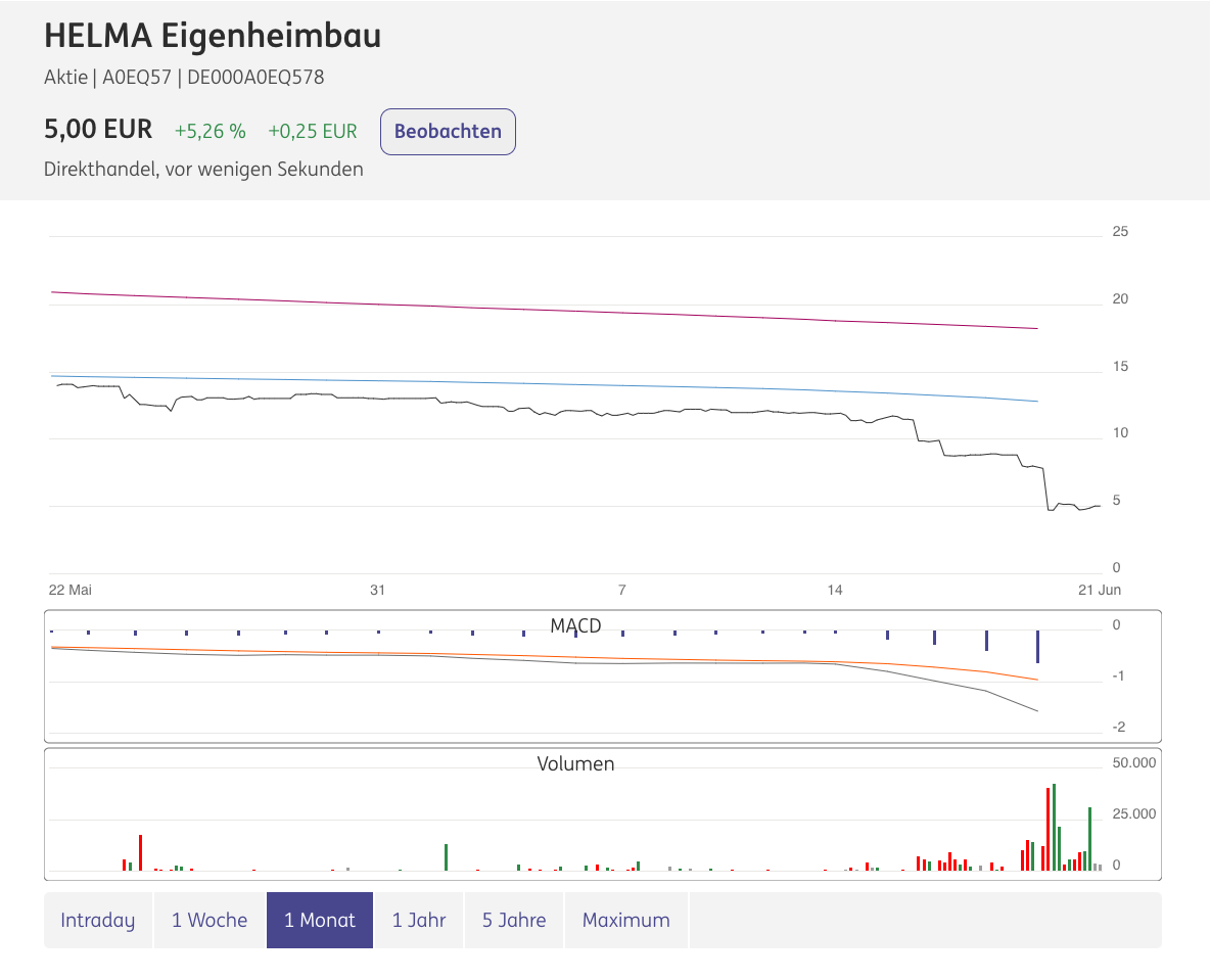 Stehst Du schräg wie Helma, dann geht es im Baubereich sehr schnell. Substanz ist ja kaum vorhanden und das Geschäftsmodell schwer unter Feuer. Ich würde/ hätte nie von Helma gekauft. Eher unteres Niveau.