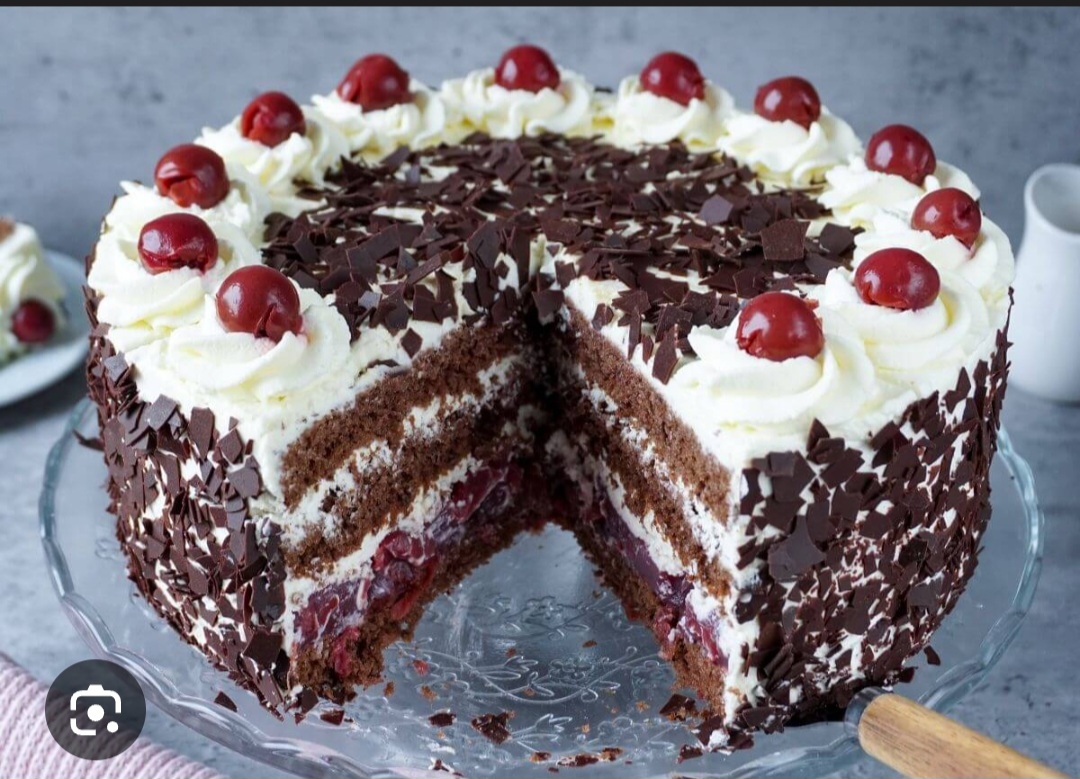 Sahne (37%), Sauerkirschen (14%), Invertzuckersirup, Weizenmehl, Zucker, Vollei, Wasser, Schokolade (Zucker, Kakaomasse, Kakaobutter, Emulgator Sojalecithine), Weizenstärke, Pflanzenfett (pflanzliche Fette, planzliche Öle), Kirschwasser (Alkoholgehalt 60vol%), Aprikosenkonfitüre (Glucose-Fructose-Sirup, Aprikosen, Geliermittel Pektin, Säuerungsmittel Citronensäure), modifizierte Stärke, Speisegelatine, Kakao stark entölt (Magerkakao), Emulgator (Mono- und Diglyceride von Speisefettsäuren), Säuerungsmittel Citronensäure, Süßmolkenpulver, Aroma, Backtriebmittel (Natriumcarbonat, Natriumcitrate), Vollmilchpulver, Speisesalz).