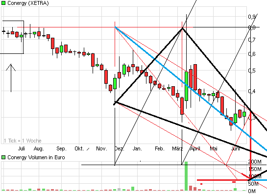 meine charts waren und sind immer noch meine eigene spinnerei, auf der suche nach der optimalen bestimmung. ich bin eigentlich zufrieden, die meisten sagen bildermaler mit negativen touch. ich aber mach weiter und denke, conergy kann gut möglich nach meiner bestimmung auf 0,08 euro fallen. schauts euch an, lacht aber nicht so das ich es hören kann!