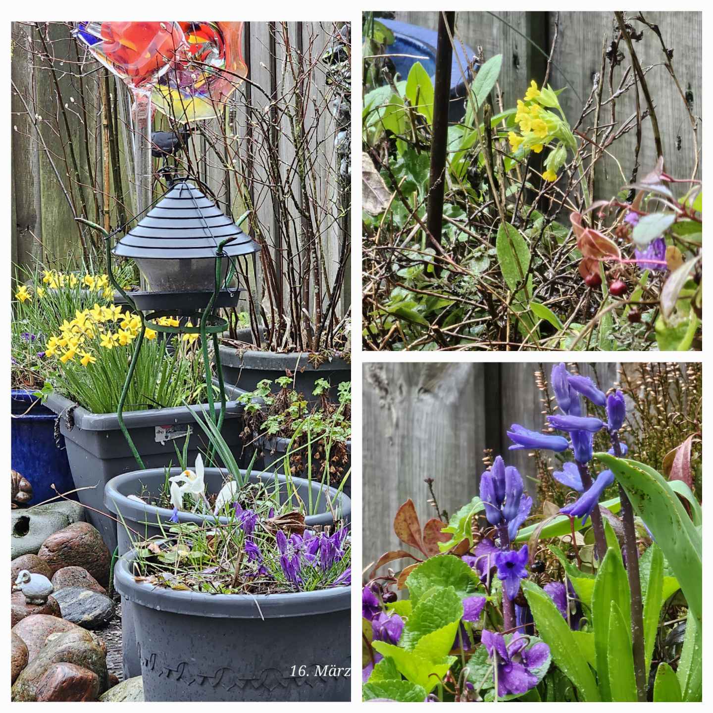 Mehr geht nicht in den Kübeln und vieles verdrängt sich wohl auch. Die Schwertlilien kommen nur noch als Blätter. Aber seit ich die Kübel den Winter über mehr in die Sonne schiebe, kommen die Frühlingsblüher auch wesentlich besser.