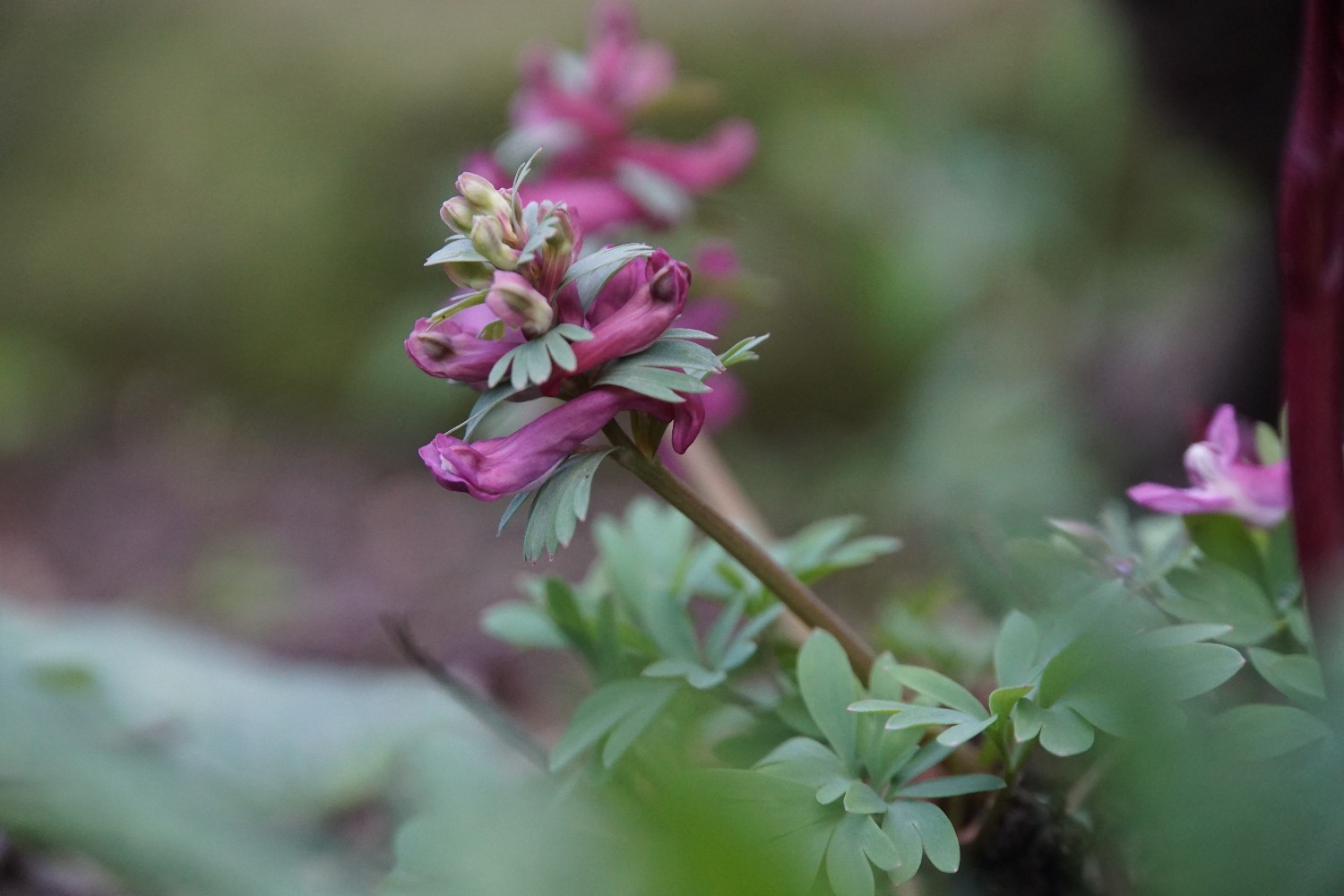 Der aus dem Schildigehege umgelagerte gefingerte Lerchensporn zeigt auch schon Blüten