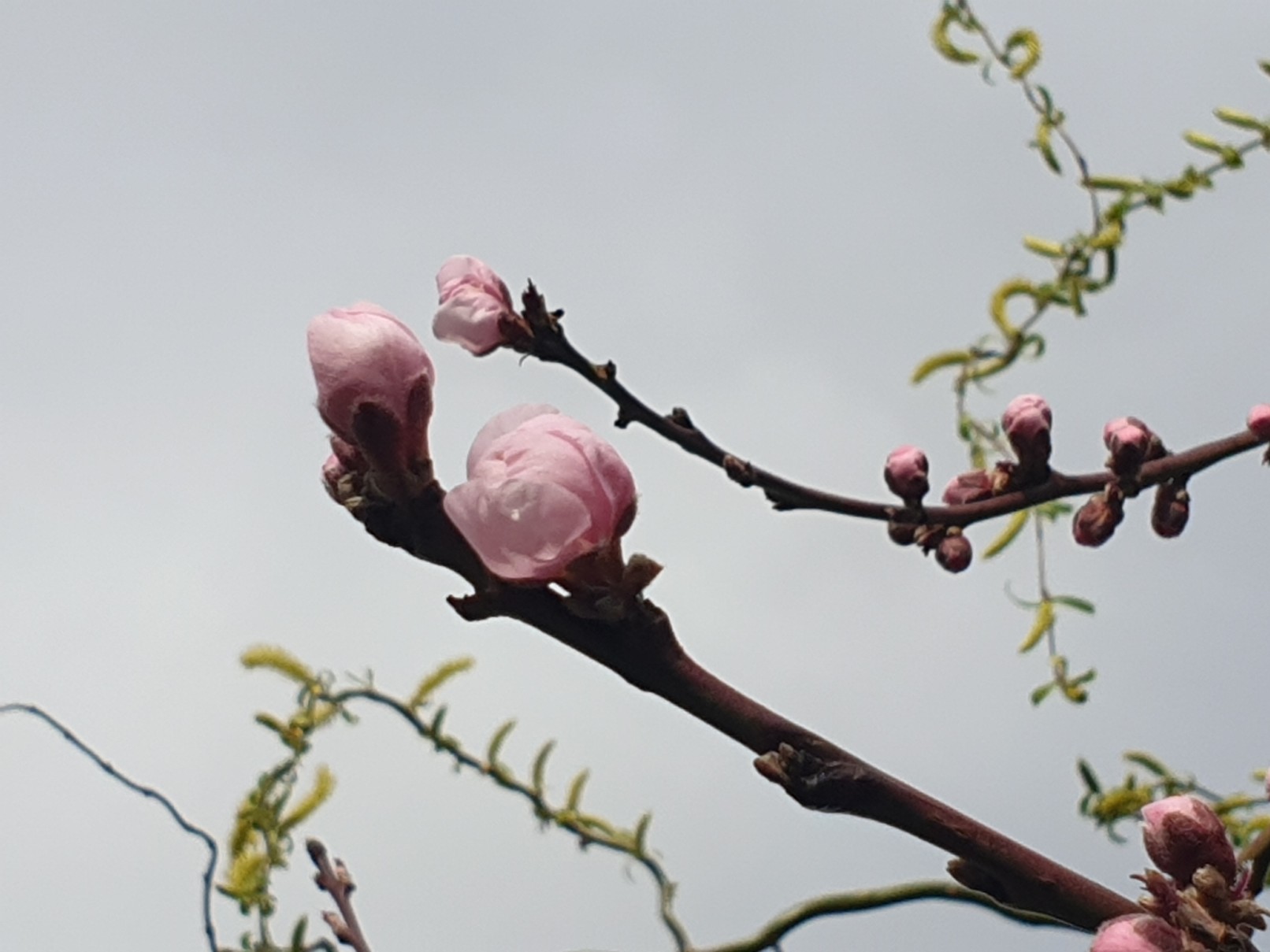 Und die eine tapfere Hälfte des Pfirsichbaums blüht quasi auch schon!